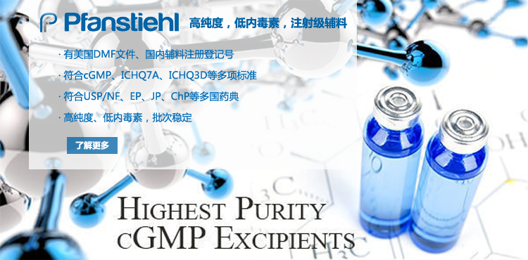 “熱烈祝賀Pfanstiehl的注射級甘氨酸Glycine(G-140)喜獲CDE登記號F20250000403, 這是Pfanstiehl產品獲得的第18個CDE登記號!”甘氨酸在醫藥輔料制劑中應用廣泛,, 可作為緩沖劑,增溶劑,穩定劑等,具有諸多優勢。Pfanstiehl秉承一貫高品質理念,為滿足全球生物制藥行業對于高品質甘氨酸的需求,隆重推出的注射級甘氨酸Glycine (G-140), 具有超高純度,超低內毒素,超低金屬殘留的特點,單獨檢測29種金屬離子,并且新增DNA,RNA,DNA酶,RNA酶和脂肪酶,亞硝酸鹽等多項質量指標的檢測,符合多國藥典規定(USP, EP, BP, JPE, ChP),可用于生物治療性藥物和疫苗的生產。產品信息:· 產品名稱:Glycine, High Purity, Low Endotoxin, Low Metals, USP, EP, BP, JPE, ChP (G-140)· 中文名稱:甘氨酸· 分子式:C2H5NO2· 分子量:75.07 g / mol· CAS號:56-40-6· 產品貨號:G-140產品特點: · 超高純度,超低內毒素,超低微生物含量,超低金屬雜質殘留· 質量指標新增DNA,RNA,DNA酶,RNA酶,脂肪酶和亞硝酸鹽檢測· 符合多國藥典:USP, EP, BP, JPE, ChP· 符合ICH Q3D標準· 符合GMP標準· 已獲DMF和CDE登記號 產品應用:· 緩沖劑· 穩定劑· 增溶劑如果您對Pfanstiehl注射級別Glycine G-140感興趣,歡迎聯系Pfanstiehl 中國區代理商北京西美杰科技有限公司獲得如下詳細的產品概況說明文件和測試樣品。Pfanstiehl Inc.最新產品系列如下,歡迎聯系北京西美杰科技有限公司獲取100g裝免費樣品。北京西美杰科技有限公司為Pfanstiehl中國代理,為客戶提供完善的技術支持與售后服務。歡迎撥打西美杰客服電話400-050-4006或者登陸網站www_xmjsci_com.hkhxtz.com了解更多信息。 更多>